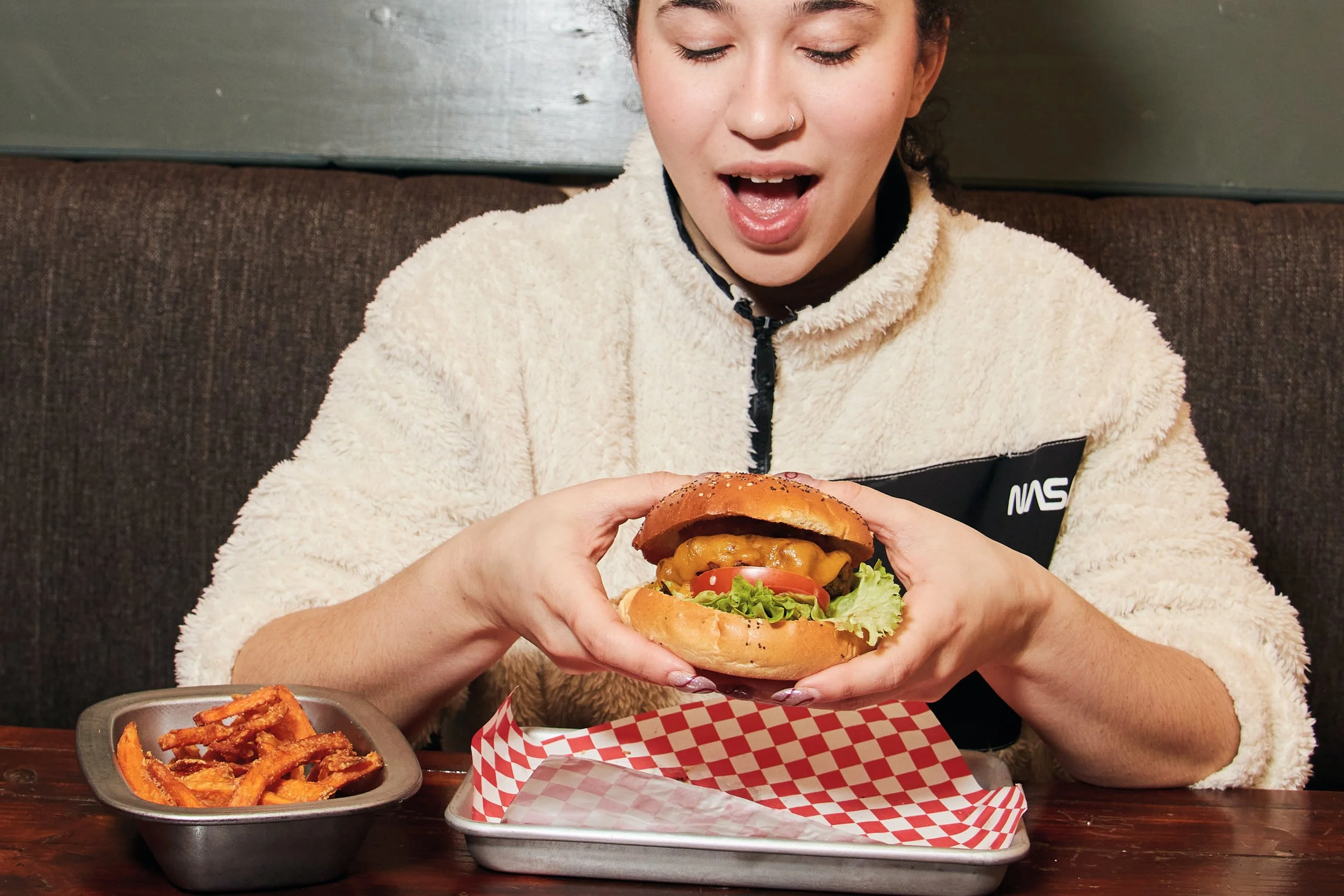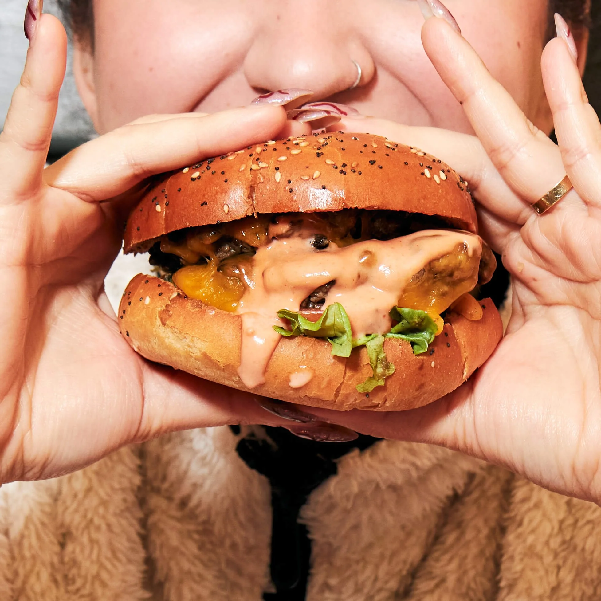 The Sinner Ready to indulge? Dive into double beef, melted cheese, pickles & house sauce. A cheeky cocktail with dinner? That’s naughty.