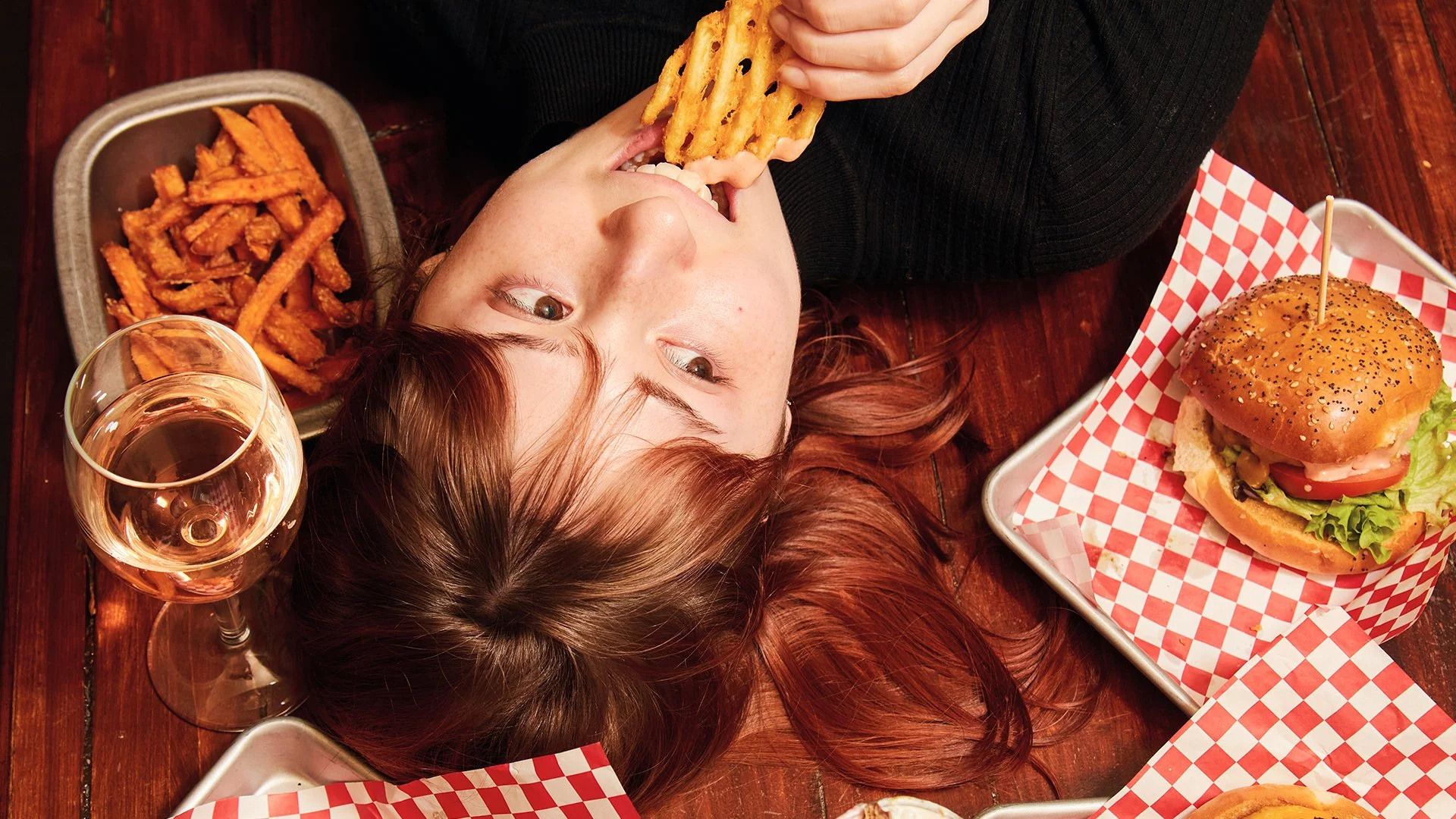 Choose your vibe, healthy or indulgent, calm or chaotic, and we'll match it with everything from fresh salad bowls to double beef burgers and cheeky cocktails .